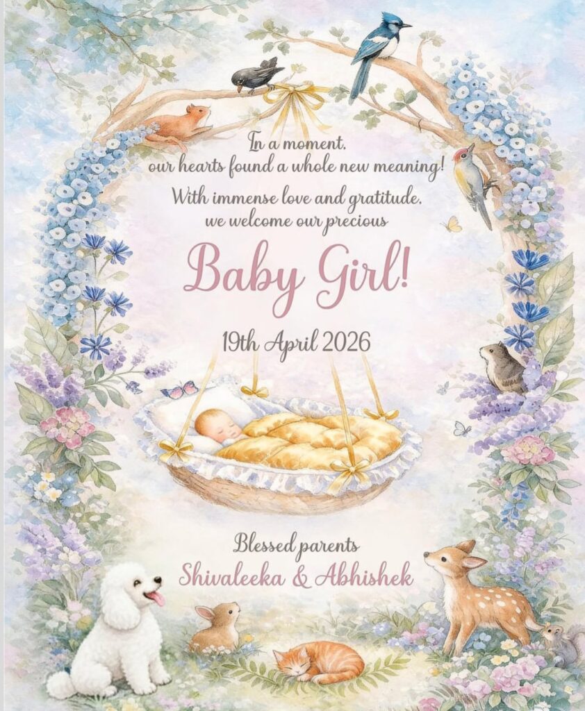 Abhishek and Shivaleeka shared the delightful news with their fans through a heartfelt social media post. They revealed that their daughter was born on April 19 and described her arrival as a divine blessing. Calling her their “little Goddess Lakshmi,” the couple expressed deep gratitude and joy.
