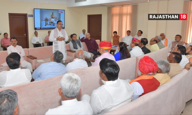 Jaipur: On Tuesday, Chief Minister Bhajan Lal Sharma convened a meeting of the BJP legislative party in the assembly’s lobby. Party MLAs and ministers attended the session, where the CM appreciated legislators who have shown commendable performance in the House.