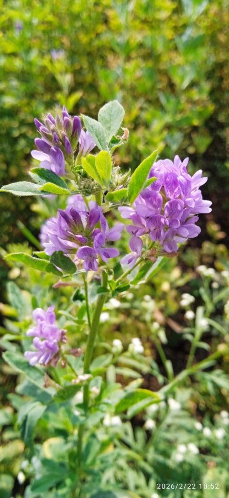 किसान समाचार । वर्तमान में खेत में मेथी घास उर्फ लहसुन घास की फसल पर जामुनी रंग के फूलों की भरपूर बहार दिखाई दे रही है। यह फसल देसी (गावरान) बीज से तैयार की गई है और अब इसे तीन वर्ष पूर्ण हो चुके हैं।