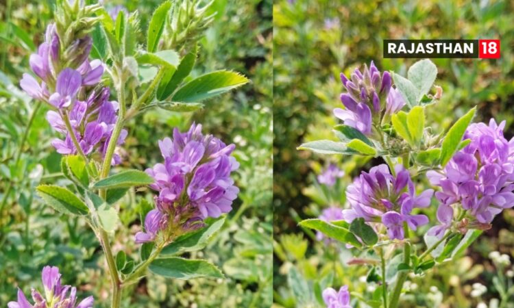 किसान समाचार । वर्तमान में खेत में मेथी घास उर्फ लहसुन घास की फसल पर जामुनी रंग के फूलों की भरपूर बहार दिखाई दे रही है। यह फसल देसी (गावरान) बीज से तैयार की गई है और अब इसे तीन वर्ष पूर्ण हो चुके हैं।