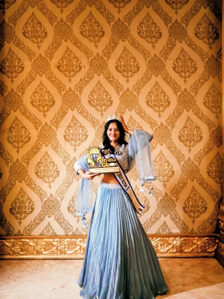 Her consistent efforts paid off when she got selected for Miss India Glam. Although she didn’t win the main title, she earned the “Best Actor” award—an achievement that significantly boosted her confidence and visibility.