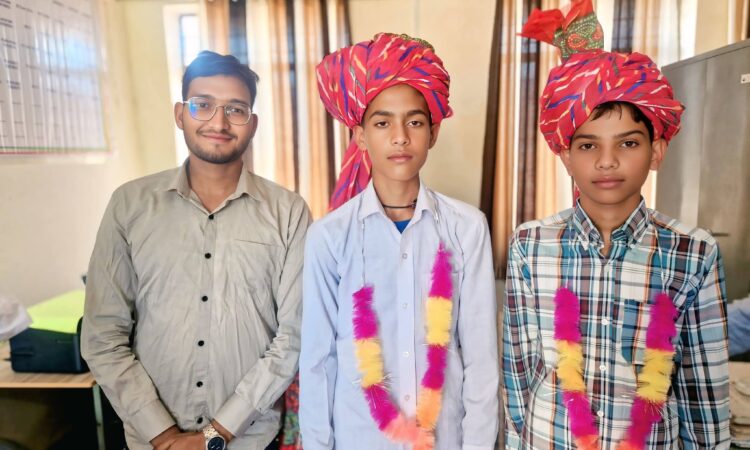 Rishipal Meena (son of Rameshwar Meena), a resident of Dimokhari, secured the first position by scoring an impressive 96.17%. Meanwhile, Bharat Ram Meena (son of Harkesh Meena), also from Dimokhari, achieved the second position with 91.17%.To celebrate this remarkable achievement, a felicitation ceremony was organized at the school.