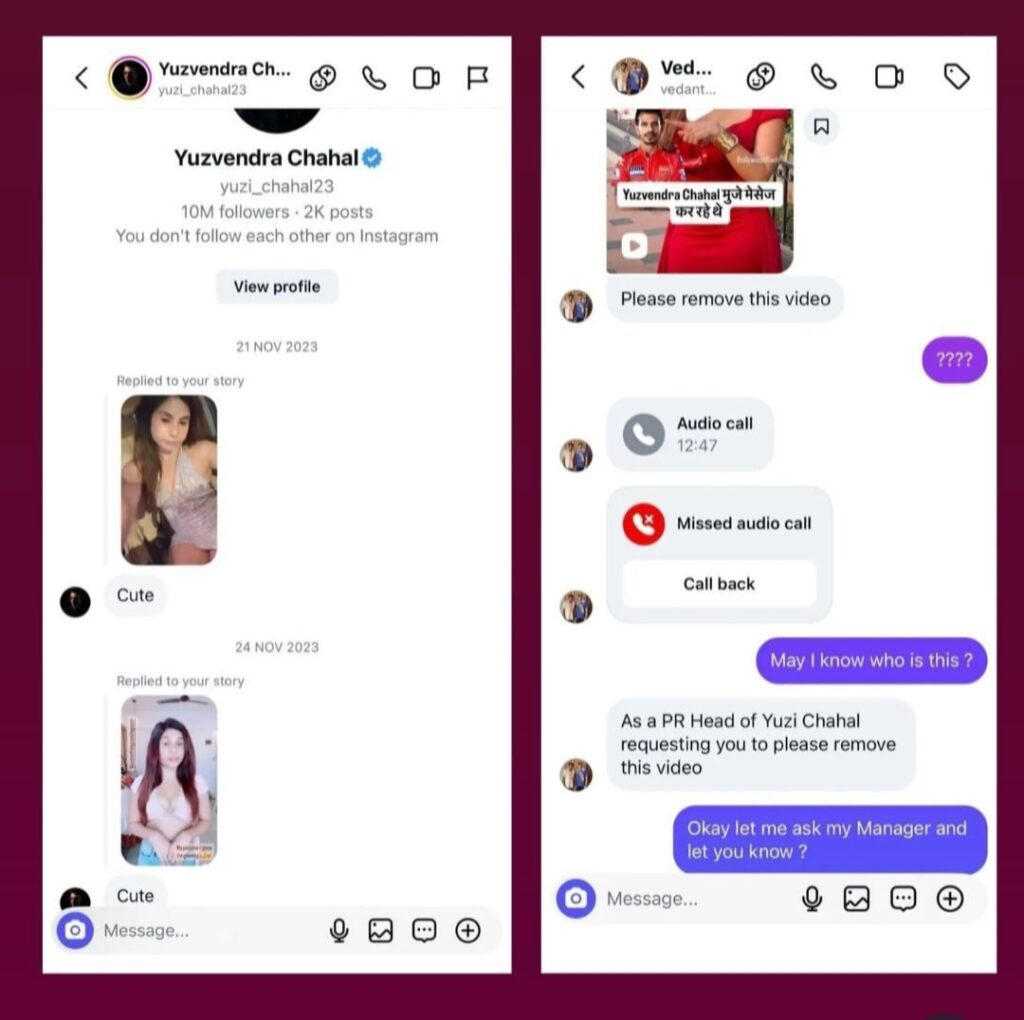 Sports Desk, New Delhi | Indian cricketer Yuzvendra Chahal and actress Taniya Chatterjee have become the center of attention online after a video featuring Tania went viral. In the clip, she is seen interacting with paparazzi and referring to a message she claims to have received from Chahal on Instagram.
